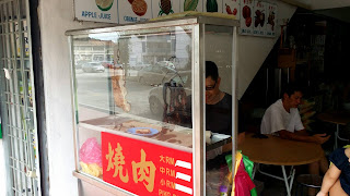 这种满足唯有在你能买到好的烧肉和好的福建虾面的前提下才能成立。那天如往常来到这里吃福建面,偶然发现咖啡店老板刚邀请来了一档炭火烧肉来助阵,仔细一看这个烧肉老板我认识,是在Medan Selera Taman Free School Food Court里的華兴烧腊(详情请参照【让味道说话】销魂烧肉 :http://flavourstalk.blogspot.my/2015/11/blog-post_27.html )。那种滋味,就凭记忆里的想象也够让我大吞口水。